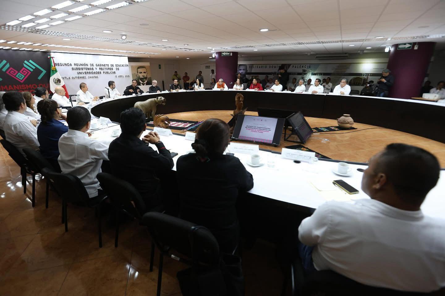Tuxtla Gutiérrez, Chiapas; 10 de abril de 2025.Al encabezar la segunda reunión con integrantes del Gabinete de Educación, subsistemas y rectores de universidades públicas del estado, el gobernador Eduardo Ramírez Aguilar afirmó que garantizar el acceso a la educación representa el acto más revolucionario y humanista de su administración. Por ello, hizo un llamado a intensificar esfuerzos para alcanzar las metas en materia de alfabetización.