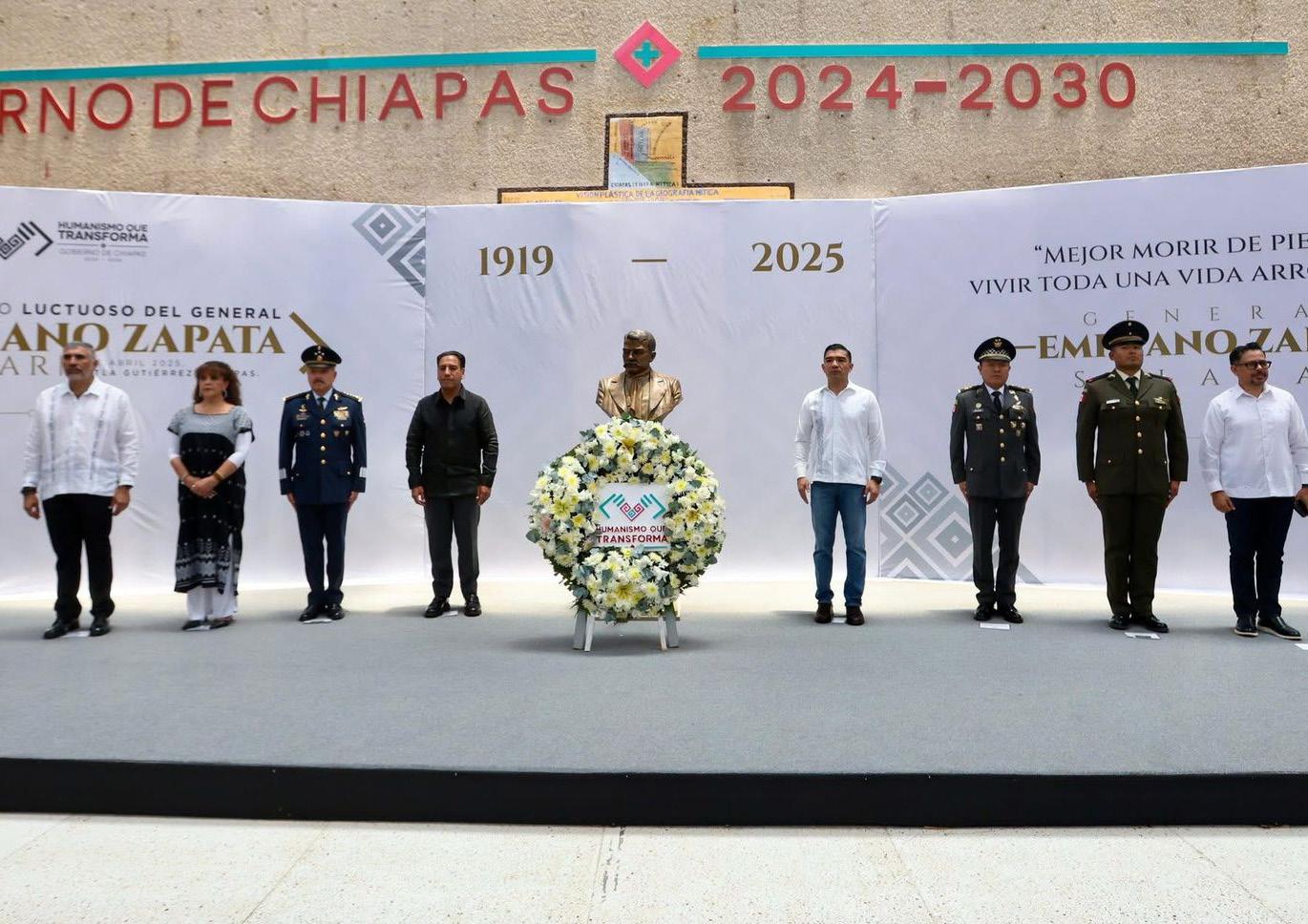 «Quisimos conmemorar el aniversario luctuoso del General Emiliano Zapata porque nos inspira con un humanismo que impulsa a transformar Chiapas”, expresó Ramírez Aguilar, desde la explanada de la sede del Poder Ejecutivo estatal, donde leyó una de las frases emblemáticas del Caudillo del Sur: “Yo estoy resuelto a luchar contra todo y contra todos sin más baluarte que la confianza y el apoyo de mi pueblo”.