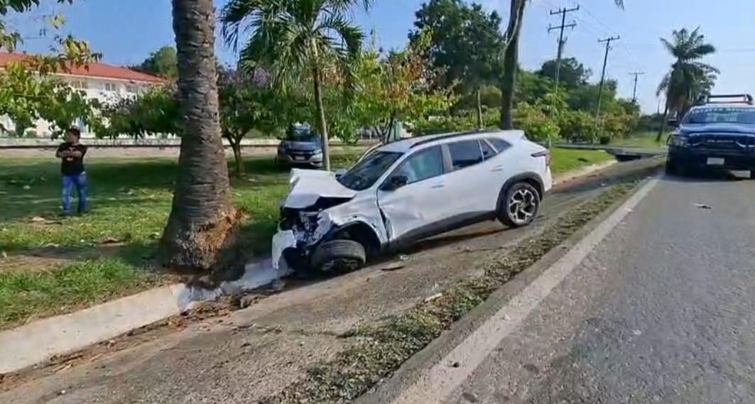 Al lugar acudieron las autoridades policiacas quienes localizaron el vehículo con severos daños materiales en la parte frontal luego de chocar con una palmera, sin que se reportaran personas lesionadas.