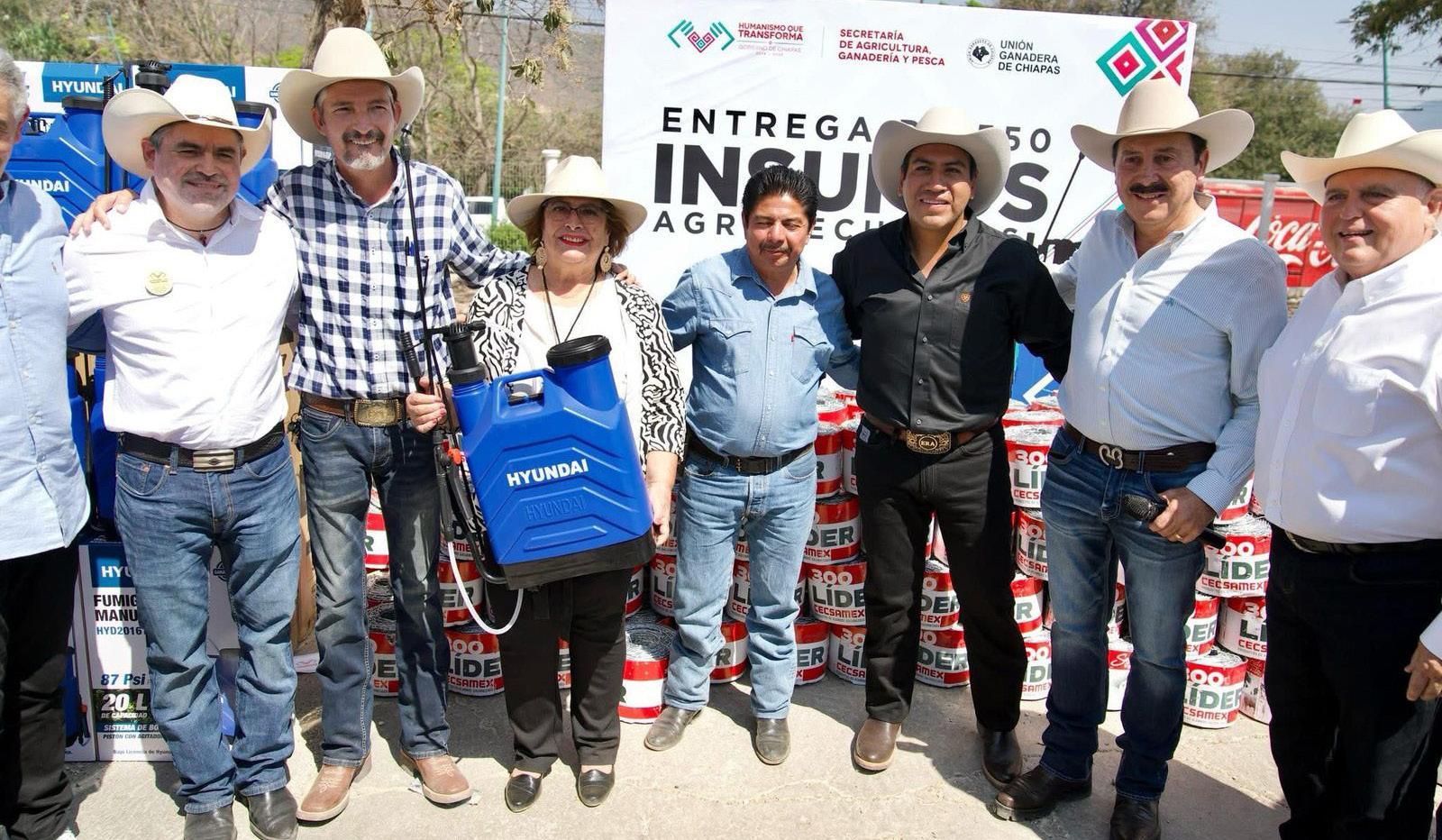 Tuxtla Gutiérrez, Chiapas; 11 de abril de 2025.- Durante la entrega de apoyos al sector agropecuario, el gobernador Eduardo Ramírez Aguilar destacó que el gobierno de la Nueva ERA trabaja para fortalecer integralmente las cadenas productivas, con el propósito de consolidar al campo chiapaneco como un pilar económico fuerte y próspero. Subrayó que estos esfuerzos buscan generar empleos, impulsar el desarrollo social y contribuir a la soberanía alimentaria de Chiapas y del país.