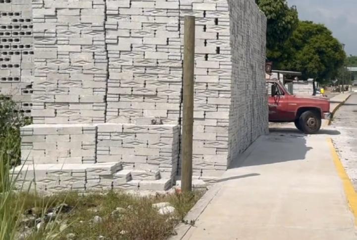 En primer lugar, se ha observado una acumulación considerable de bloques que, debido a su altura, representan un peligro inminente. Existe un riesgo latente de que esta pila de materiales pueda caer, poniendo en peligro la vida de los peatones que circulan por la acera y a los vehículos que transitan por el Libramiento.