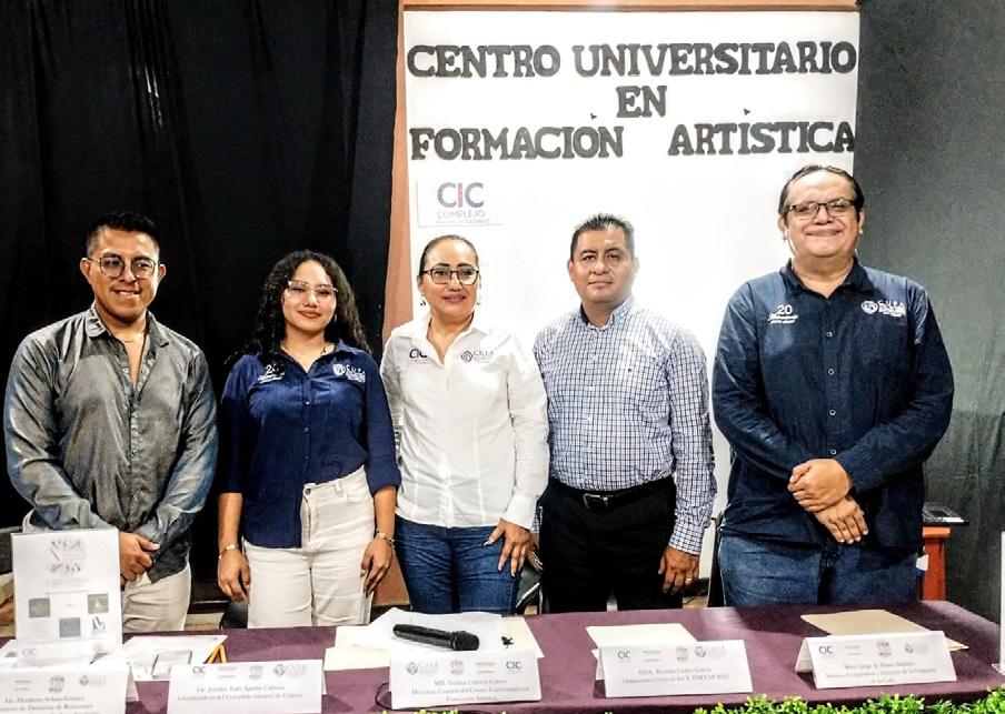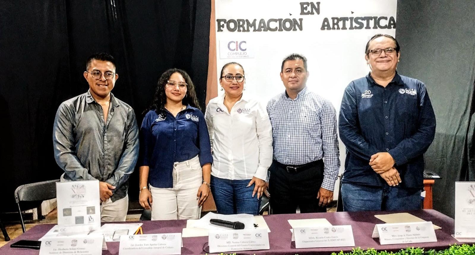 acompañada de Joselyn Tairi Aguilar Cabrera, coordinadora del CIC; Ricardo Castro García Coordinador General del X FIMTAP 2025, Jorge Flores Saldaña, docente y músico y por Heriberto Solano, hicieron la invitación al público en general a disfrutar de este espectacular concierto que conjunta el Talento de los Músicos del Soconusco y de invitados internacionales.