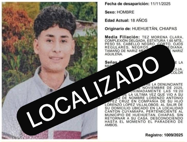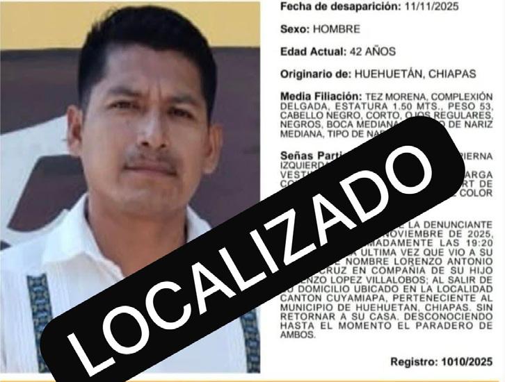 Mientras que en Huehuetán se reportó las desapariciones de Lorenzo Antonio López Cruz, de 41 años, que junto
