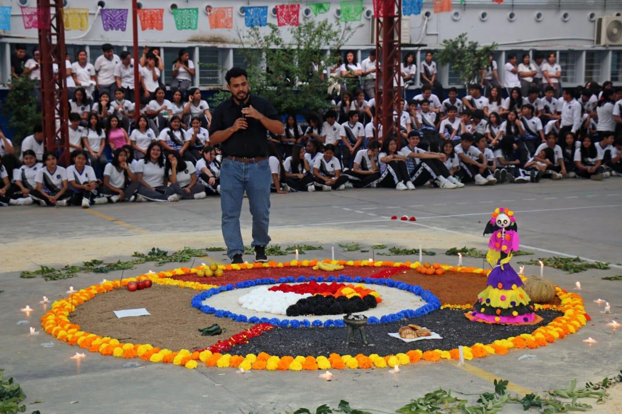 Durante la puesta en escena, el arqueólogo Abraham Jair Ambrosio López se convirtió en puente entre los tiempos, explicando a los estudiantes el significado profundo del altar circular maya, un símbolo que representa el universo en movimiento, la continuidad de la vida, la muerte que renueva, el equilibrio que guía y la regeneración que impulsa a toda comunidad a seguir avanzando en armonía.