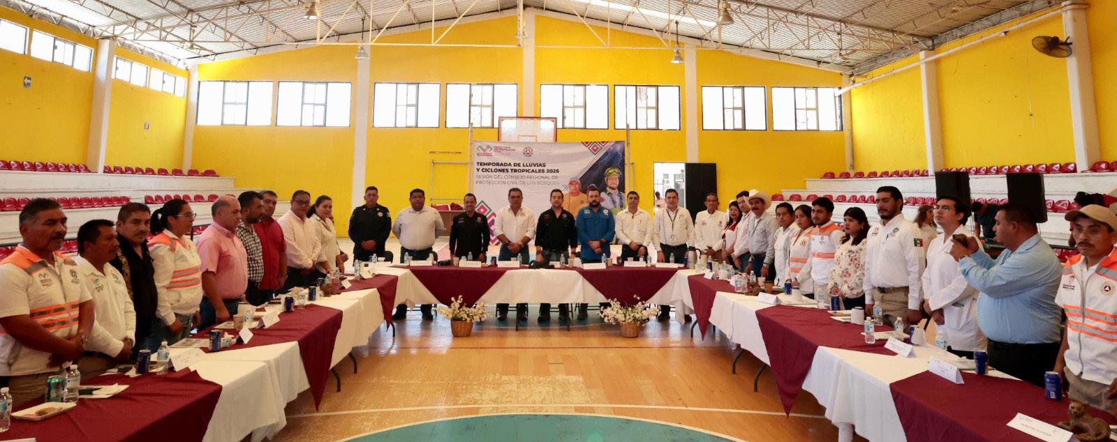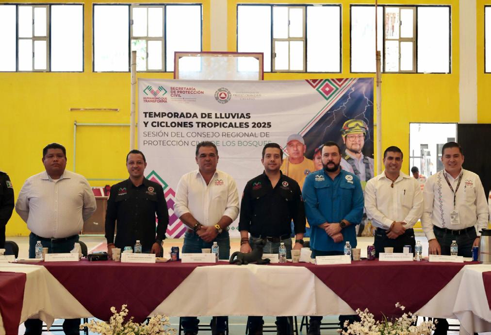 Simojovel, Chiapas; 23 de julio de 2025. Con el objetivo de reforzar las acciones de prevención, el secretario de Protección Civil, Mauricio Cordero Rodríguez, encabezó la Sesión del Consejo Regional de Protección Civil de Los Bosques, donde presentó la estrategia para la Reducción de Riesgos ante la Temporada de Lluvias y Ciclones Tropicales 2025.