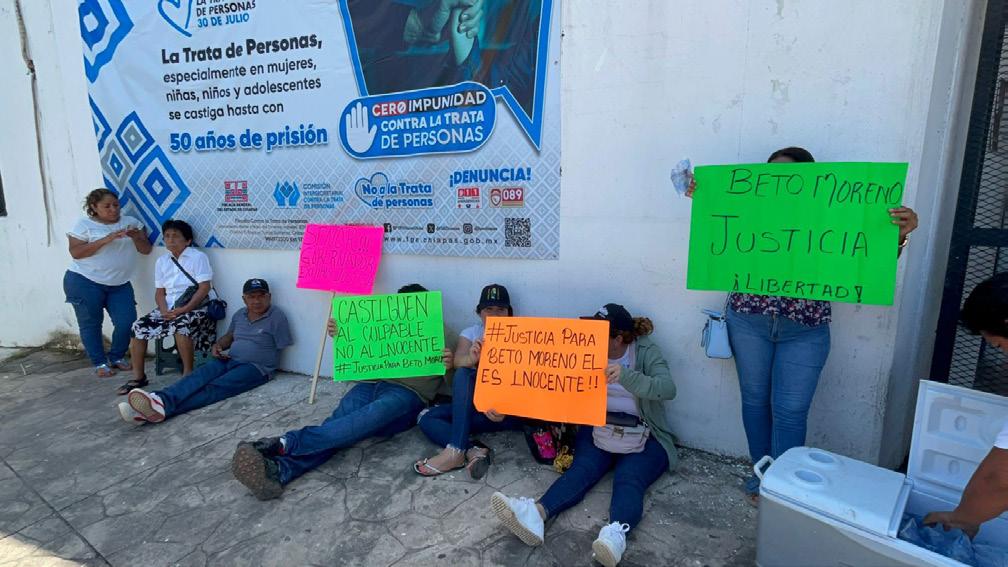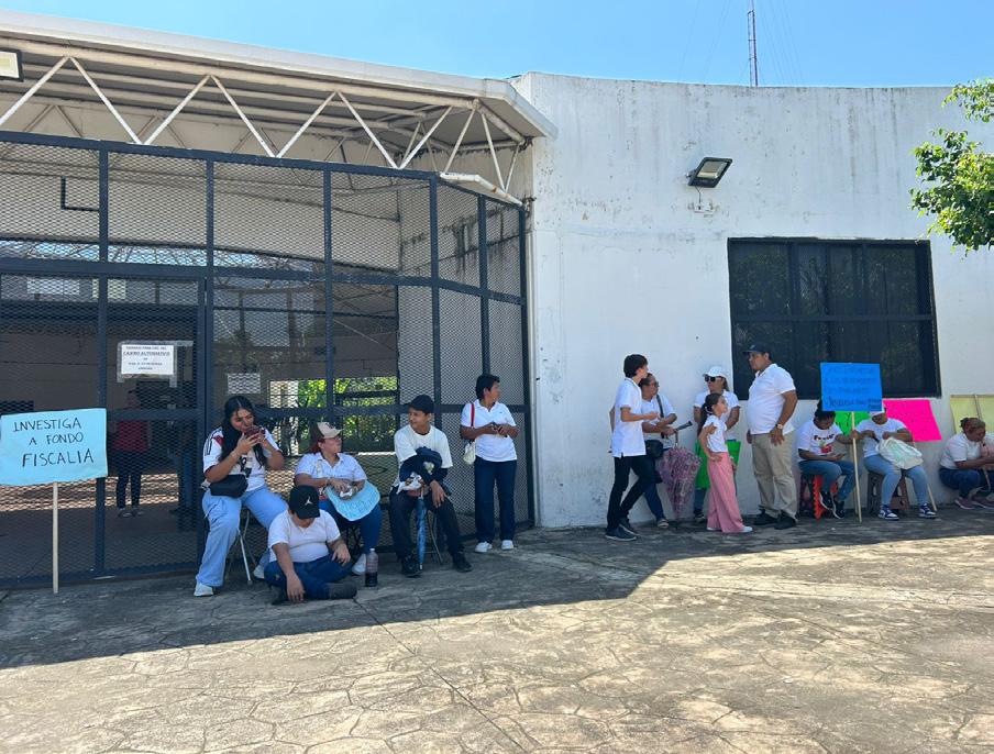 Familiares, amigos y personas de la comunidad Ignacio Zaragoza del municipio de Frontera Hidalgo, se manifestaron de manera pacífica a las afueras de la oficina de distrito de la Fiscalía General del Estado (FGE) por la detención del maestro José Moreno Solís.