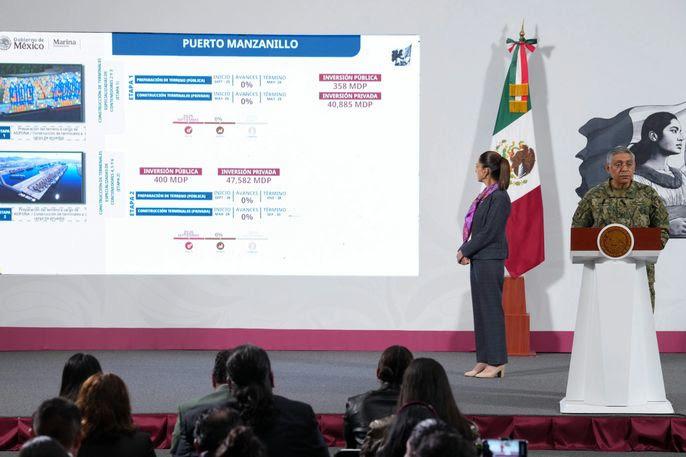 Ciudad de México, 22 de julio de 2025. - El Gobierno de México, a través de la Secretaría de Marina, informó que se destinará una inversión pública de 55 mil 179 millones de pesos (mdp) y una privada de 241 mil 51 mdp, para la realización de obras prioritarias en nueve puertos y con ello, al término de la administración de la Presidenta Claudia Sheinbaum Pardo, tener un Sistema Portuario Nacional competitivo, eficiente y acorde a las necesidades del país.