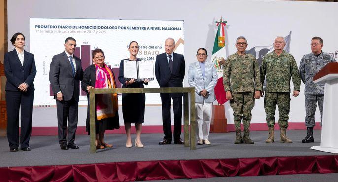 Durante el informe de resultados del Gabinete de Seguridad, la Jefa del Ejecutivo Federal destacó que el primer semestre del 2025, del 1 de enero al 30 de junio, es el de menos homicidios desde 2016 y aseguró que este delito continuará reduciendo gracias a la implementación de la Estrategia Nacional de Seguridad.