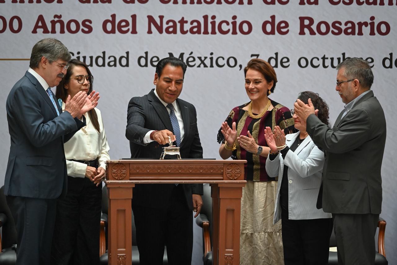 Acompañado por la directora general de Correos de México, Violeta Giorgina Abreu González, y el analista académico y consultor Gabriel Guerra Castellanos, hijo de la escritora, Ramírez Aguilar agradeció la emisión de esta serie de timbres postales que honra y visibiliza a una chiapaneca ilustre, pionera en la política, la diplomacia y la literatura. Subrayó que con la histórica llegada de Claudia Sheinbaum Pardo como primera presidenta de México, también se simboliza la presencia de Rosario Castellanos y de todas las mujeres que han abierto camino.