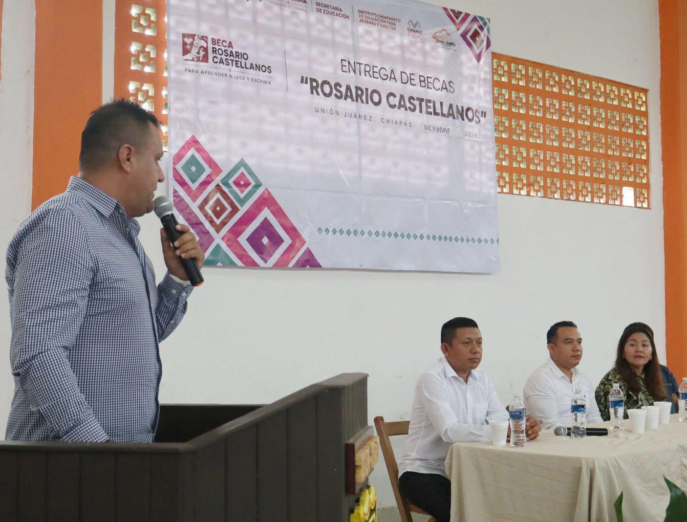 Unión Juárez, Chiapas; 07 de octubre de 2025.- La educación continua siendo una de las prioridades en el municipio de Unión Juárez, afirmó el alcalde Fabián Barrios de León, durante la entrega de becas “Rosario Castellanos” a pobladores que forman parte del Programa de Alfabetización “Chiapas Puede”.