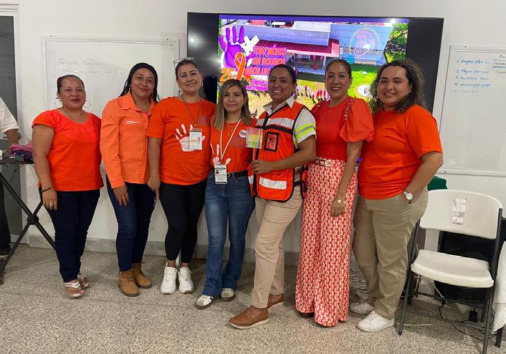 Huixtla, Chiapas. Septiembre 25 del 2025.- En el marco del Día Naranja, la Dirección de Empoderamiento de la Mujer que preside la C. Candelaria Herrera Estudillo, en coordinación con la Clínica de la Mujer y Parto Humanizado, representada por la Dra. Mireya Camposeco Reyes, llevaron a cabo una plática informativa sobre Violencia de Género en el salón de usos múltiples del Ingenio Azucarero Grupo Porres.