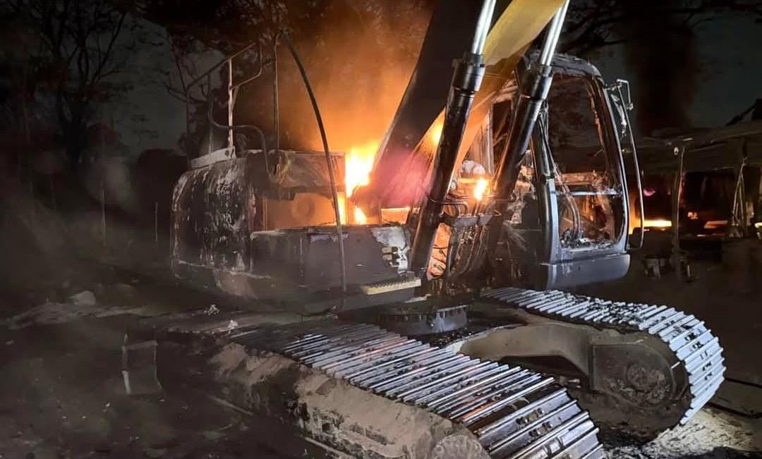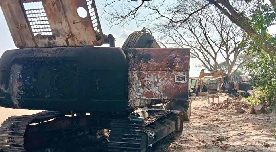 ubicado en el Cantón «El Arenal». Los presuntos delincuentes incendiaron tres máquinas excavadoras, conocidas como «L», mientras que el personal a cargo de la seguridad fue amarrado para que no pudieran pedir ayuda.