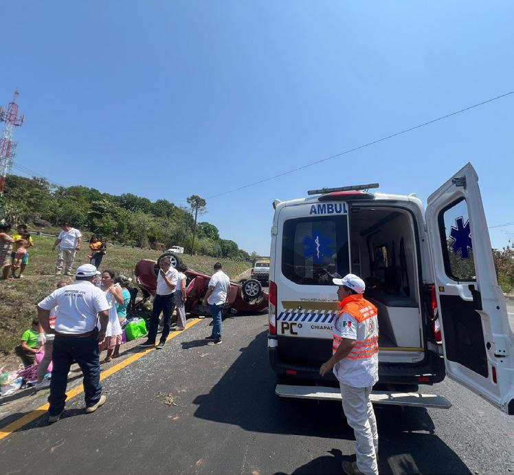 Bigvai Méndezcruz Cruz/Tucan Huixtla, Chiapas; 14 de marzo del 2025.- Una familia originaria de la Ciudad de México -CDMX-sufrió un accidente esta tarde en la conocida “Curva del Diablo”, en la carretera HuixtlaTapachula, luego de que el vehículo en el que viajaban volcara, dejando como saldo varias personas con lesiones leves.
