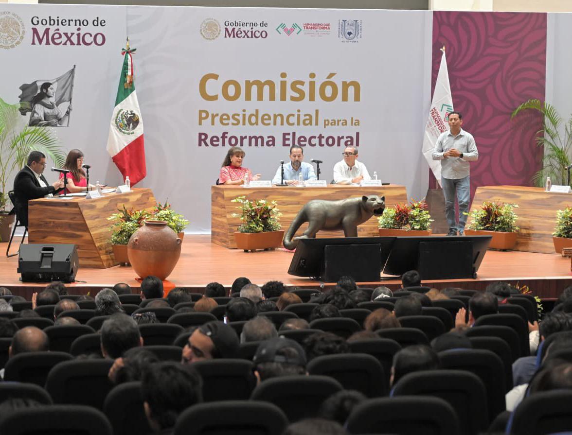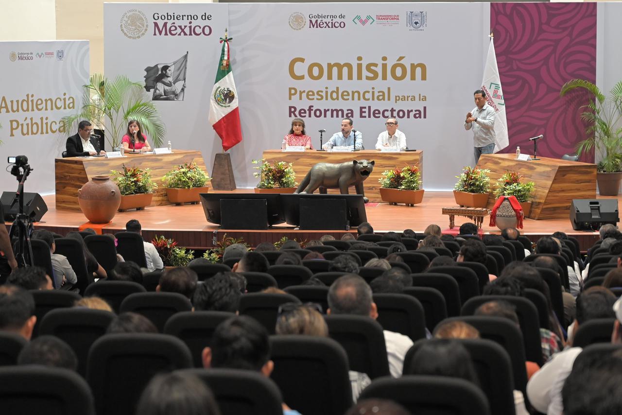 Tuxtla Gutiérrez, Chiapas; 15 de octubre de 2025.Como parte de los trabajos de la Comisión Presidencial para la Reforma Electoral, creada por la presidenta Claudia Sheinbaum Pardo, este miércoles se realizó en Chiapas la Audiencia Pública con la participación de integrantes del Poder Legislativo, académicos, especialistas, organizaciones y representantes de la sociedad civil, quienes presentaron propuestas para construir una reforma que coloque en el centro la democracia y al pueblo.