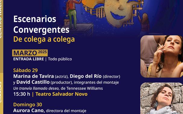 Ese mismo día, a las 15:30 h, en el Teatro Salvador Novo se realizará la charla “De colega a colega” con Marina de Tavira, Diego del Río y David Castillo, director y productor de la obra Un tranvía llamado deseo, que ofrece funciones en ese foro hasta el 12 de abril, miércoles, jueves viernes y sábados, a las 18:00 h; y domingos, a las 17:00 h.