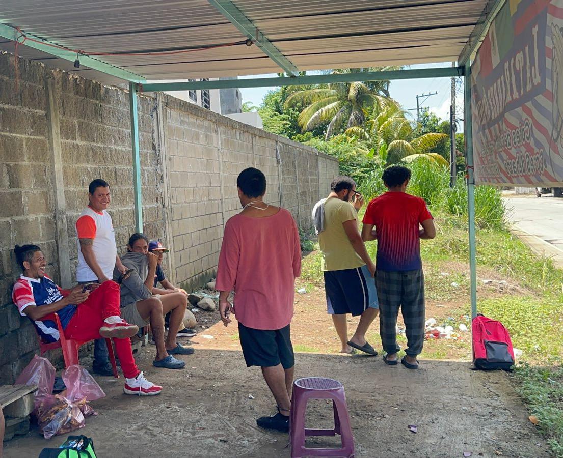 Tapachula, Chiapas; 22 de septiembre de 2025.Migrantes que se encuentran en Tapachula, buscan empleos informales o formales desde una galera techada en frente del albergue Jesús el Buen Pastor del Pobre y del migrante quienes están ávidos de poder realizar alguna actividad para poder sostenerse.