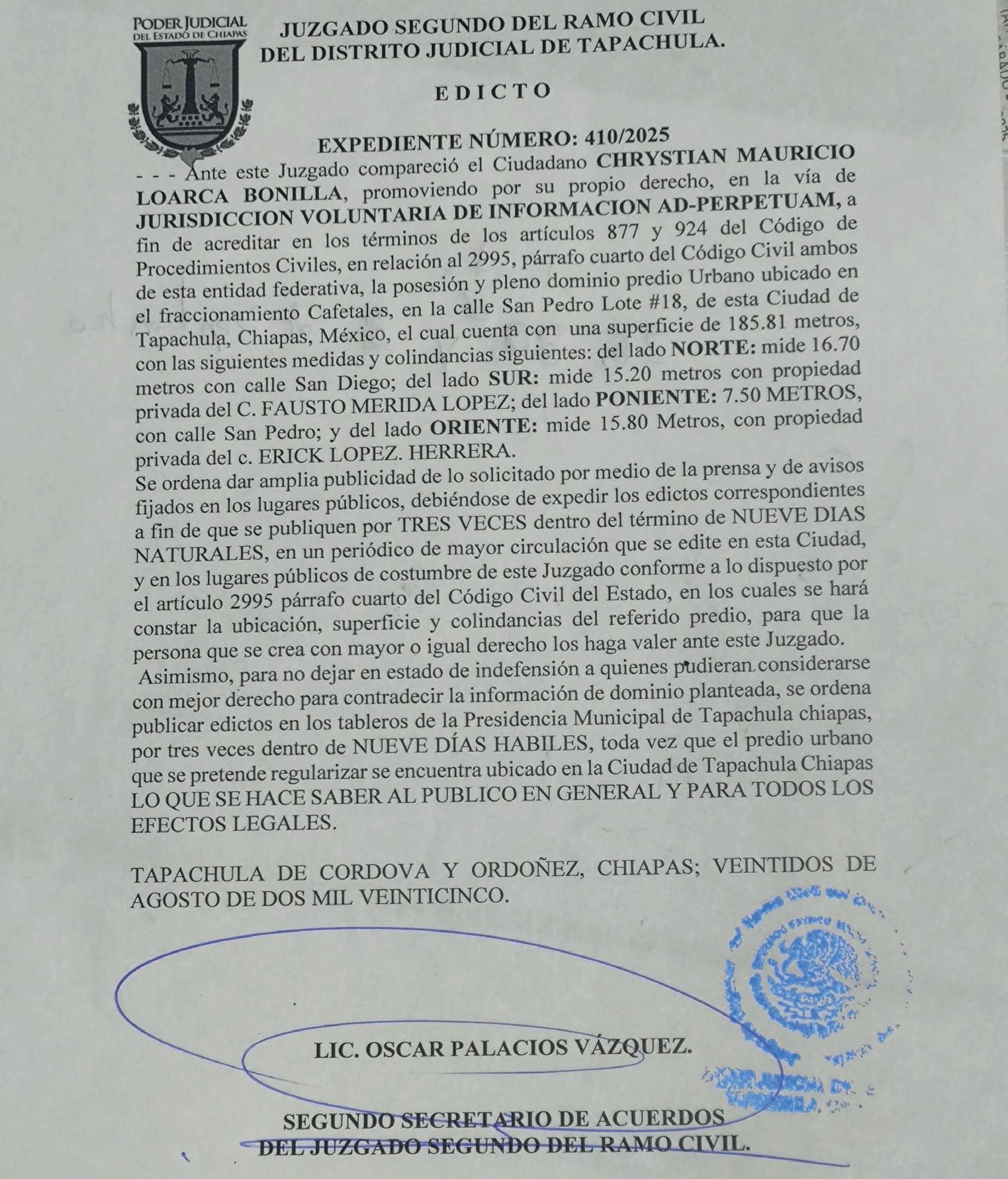 Domicilio de la publicación: 2a. Av. Sur Número 100 Colonia Centro Tapachula, Chiapas C.P. 30700