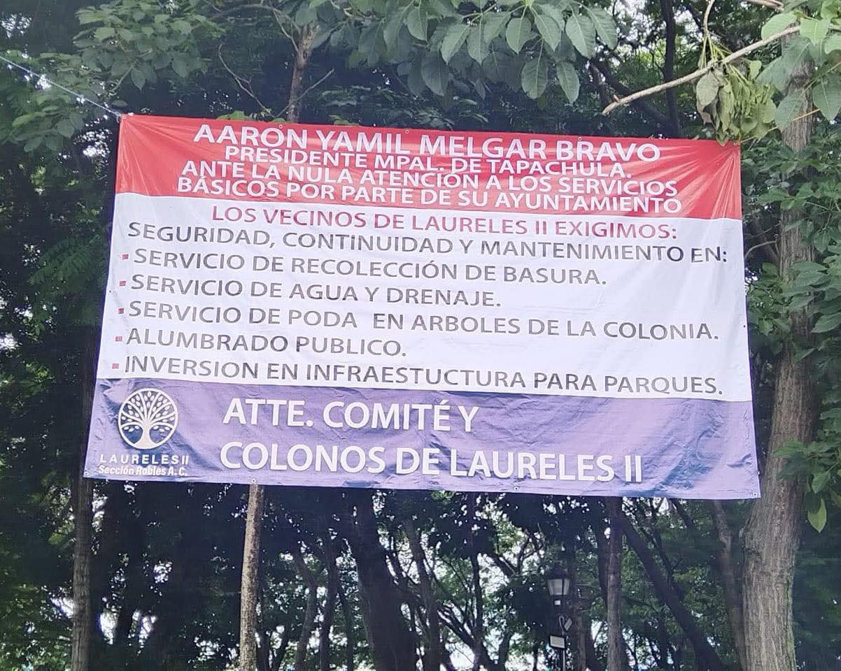 Como no los ha escuchado y menos atendido, decidieron colocar una lona de manera pública, donde le hacen ver la nula atención a los servicios básicos, donde le exigen seguridad, así como servicio de recolección de basura,