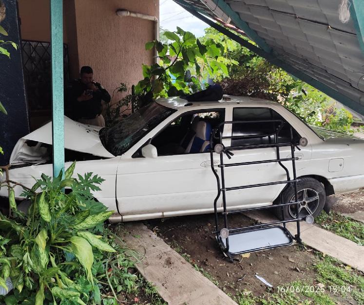 Tapachula, Chiapas; 16 de junio de 2025.- La tarde del lunes se registró un accidente vehicular a la altura del fraccionamiento Texcuyuapan en el municipio de Tapachula, como referencia sobre las calles Lagartero y avenida Río Cahoacán, en el percance se vio involucrado un automóvil del servicio particular el cual terminó chocando en una casa luego de que su conductora perdió el control de la unidad por una presunta falla mecánica.