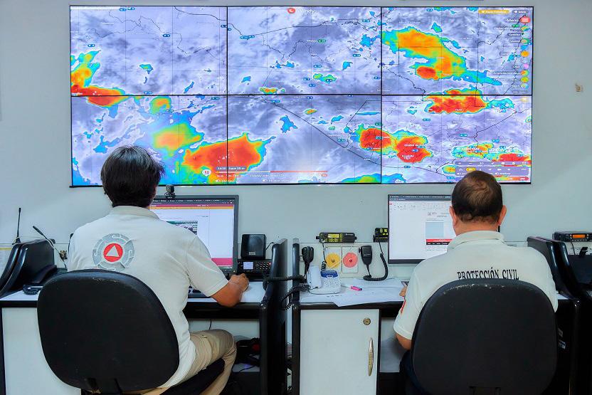 Se pronostican lluvias intensas de 75 a 150 mm en las próximas 24 horas; vientos de 20 a 30 km/h con ráfagas de 40 a 60 km/h y oleaje de 1.5 a 2.5 metros en las costas de la entidad.