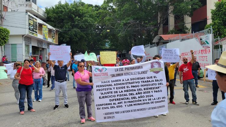 Tuxtla Gutiérrez, Chiapas; 26 de junio de 2025.- Más de 6,700 trabajadores administrativos de la Secretaría de Educación del Estado, incluyendo personal de base, confianza y eventuales, se han movilizado para exigir el pago inmediato del Bono al Ajuste de la Medida de Bienestar (MB), una prestación que, aseguran, no ha sido cubierta en tiempo y forma.