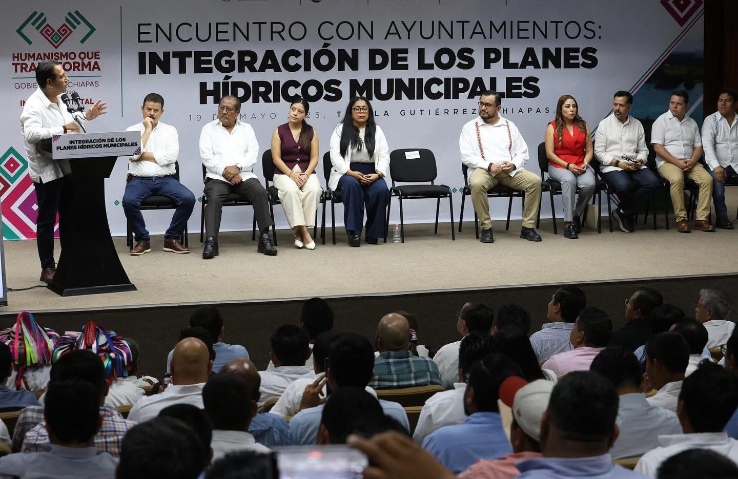 Ante presidentas y presidentes municipales, y las y los directores de obra pública y de organismos de agua potable de los ayuntamientos, el mandatario subrayó que Chiapas cumplirá con los objetivos del Plan Nacional Hídrico impulsado por la presidenta Claudia Sheinbaum Pardo, gracias al compromiso de su gobierno de atender de manera prioritaria las necesidades en esta materia, especialmente en los municipios con mayor rezago social.