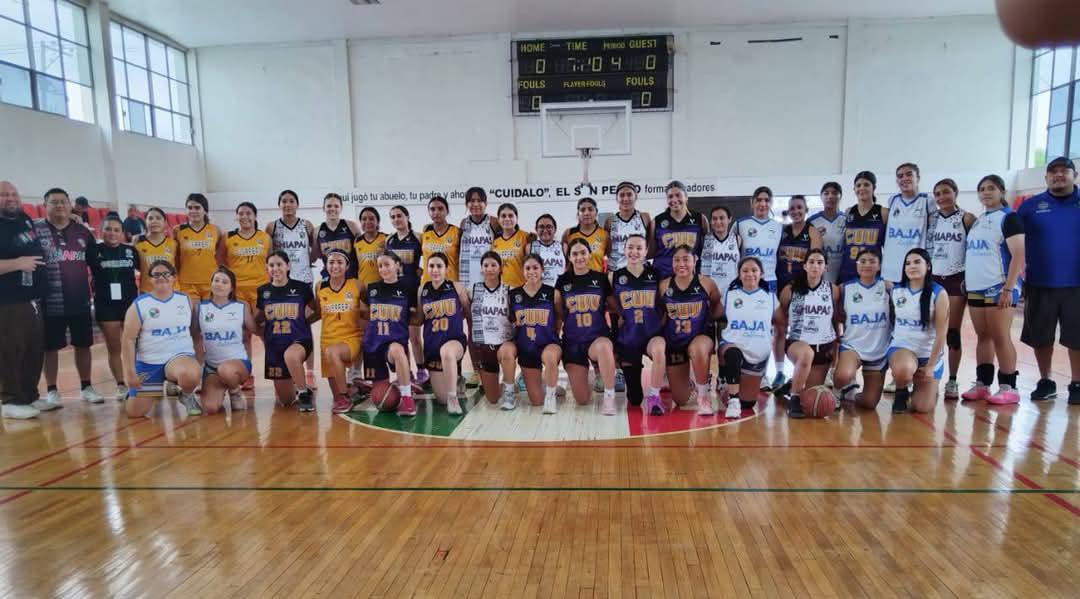 Tapachula, Chiapas; 19 de mayo de 2025.- La «Quinteta» de la selección Chiapas, que dirige el coach tapachulteco Chapis Gutiérrez, se corona campeón en las olimpiadas nacionales 2025, categoría juvenil femenil, al vencer por pizarra de 31 a 29, a la selección de Baja California, el pasado fin de semana, en el estado de Chihuahua.