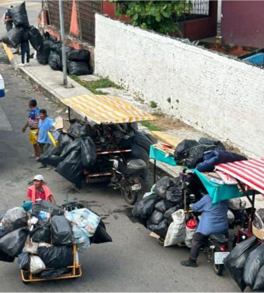 Los tricicleros, quienes acuden a realizar labores en la zona, contribuyen al caos, formando filas interminables y complicando aún más el acceso y la limpieza.