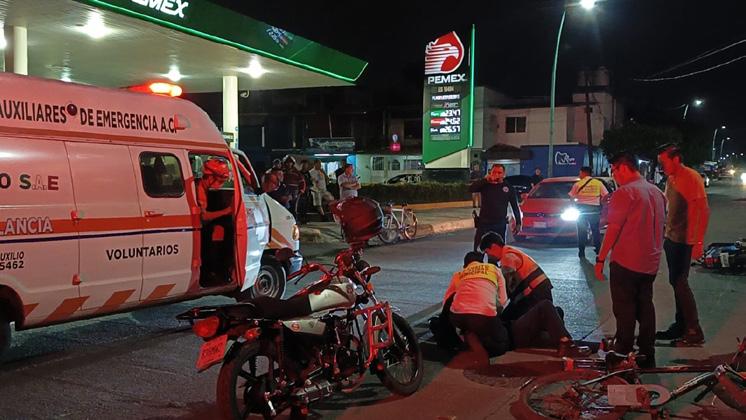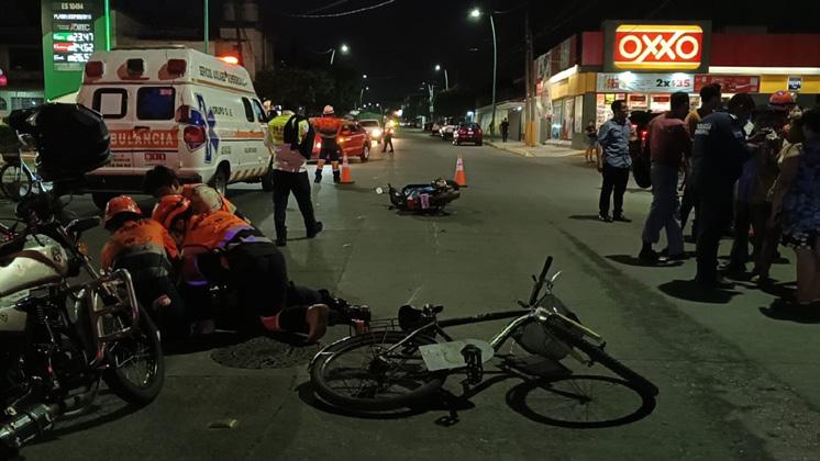 Tapachula, Chiapas; 08 de diciembre de 2025.- A los números de emergencias se reportó un accidente que dejó como saldo un adulto mayor lesionado luego de que chocaran una bicicleta y una motocicleta al norponiente de Tapachula cerca de una gasolinera.