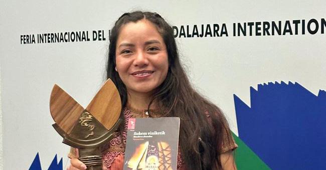 el género de cuento por la obra Sokem Viniketik, (Hombres absurdo), una compilación de seis textos que giran en torno a la muerte como el evento constante y realidad marcadas por la pobreza, la tradición y el choque con la modernidad. Por primera vez, a la par de la entrega del Premio, la obra ya fue publicada; se encuentra en el stand de la Universidad de Guadalajara, en la misma Feria del Libro.