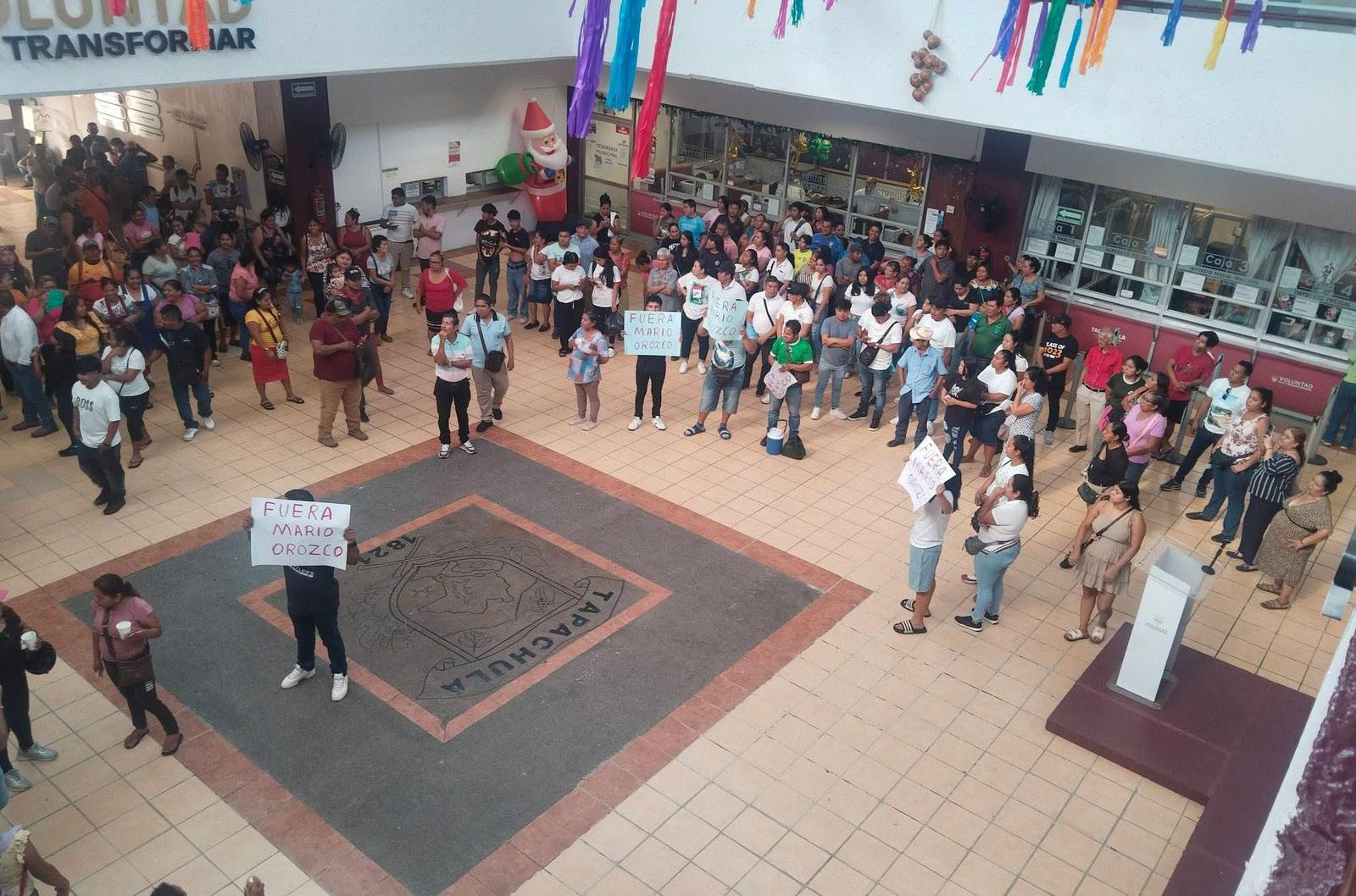 Tapachula, Chiapas; 8 de diciembre de 2025.– Un grupo de comerciantes de diversos mercados de la ciudad se plantaron este martes al interior del ayuntamiento municipal para repudiar lo que calificaron como una “actitud denigrante” del presidente municipal, Yamil Melgar, y exigir la salida de Mario Orozco y del titular de Servicios Públicos, a quien señalaron de ser “corrupto y una lacra”.