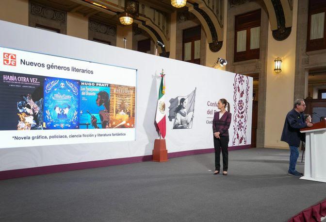 Ciudad de México, 2 de mayo de 2025 .- En la conferencia matutina: “La mañanera del pueblo”, que encabeza la Presidenta Claudia Sheinbaum Pardo, el director general Fondo de Cultura Económica (FCE), Paco Ignacio Taibo II, informó que preparan el lanzamiento, para finales de este año, de la colección 25 para el 25, que tiene como objetivo obsequiar 2 y medio de libros a jóvenes de América Latina particularmente en Argentina, Colombia, Cuba, Venezuela, Chile, Paraguay, Guatemala y México.