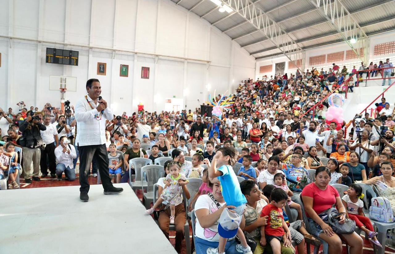 Palenque, Chiapas; 30 de abril de 2025.- El auditorio La Primavera, en el municipio de Palenque, se llenó de risas y felicidad con la presencia de niñas y niños provenientes de distintas colonias, barrios, ejidos y rancherías, quienes, acompañados de sus madres y padres, se reunieron para celebrar el Día de la Niña y el Niño junto al gobernador Eduardo Ramírez Aguilar.