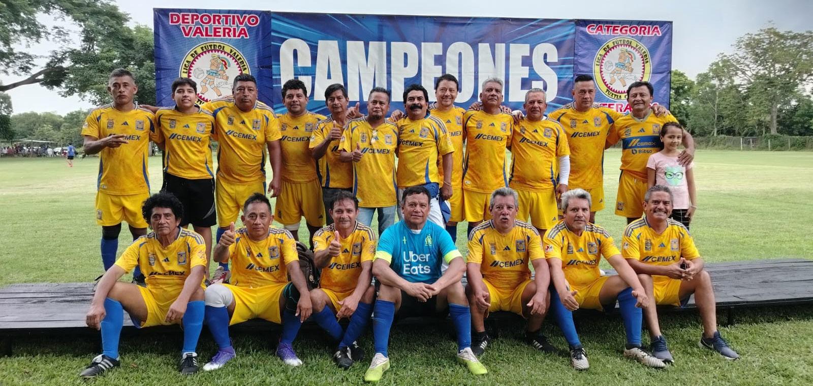 Tapachula, Chiapas; 20 de agosto de 2025.- El Deportivo Tigrillos se corona campeón del Torneo de Liga 2025, en la categoría veteranos oro del Valeria, al vencer por marcador global de 3-1 a Jiménez y Asociados, el pasado domingo por la tarde.