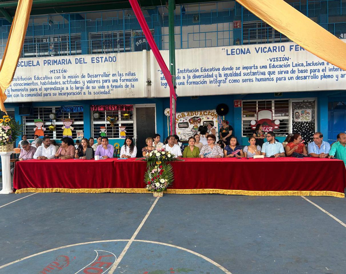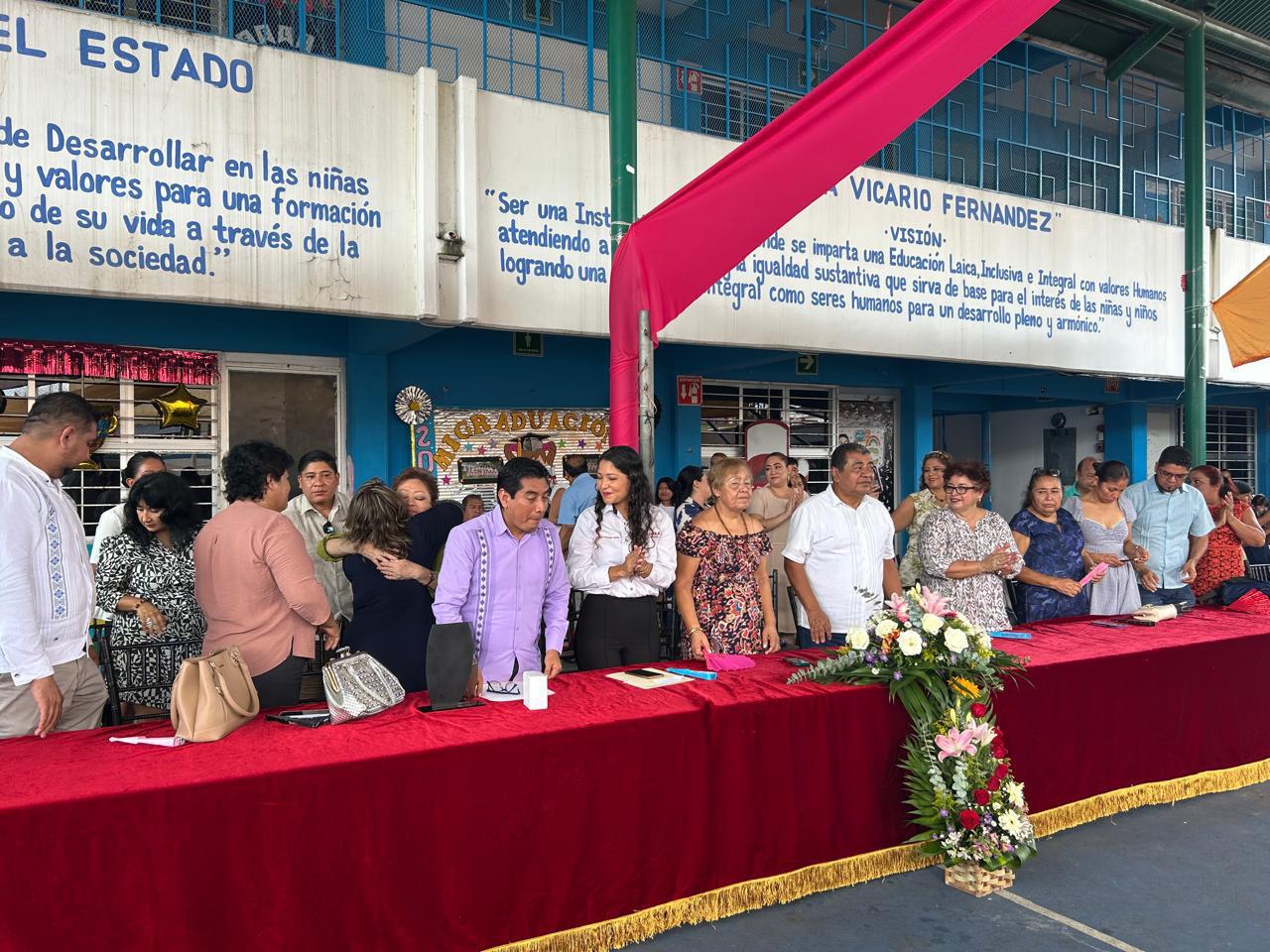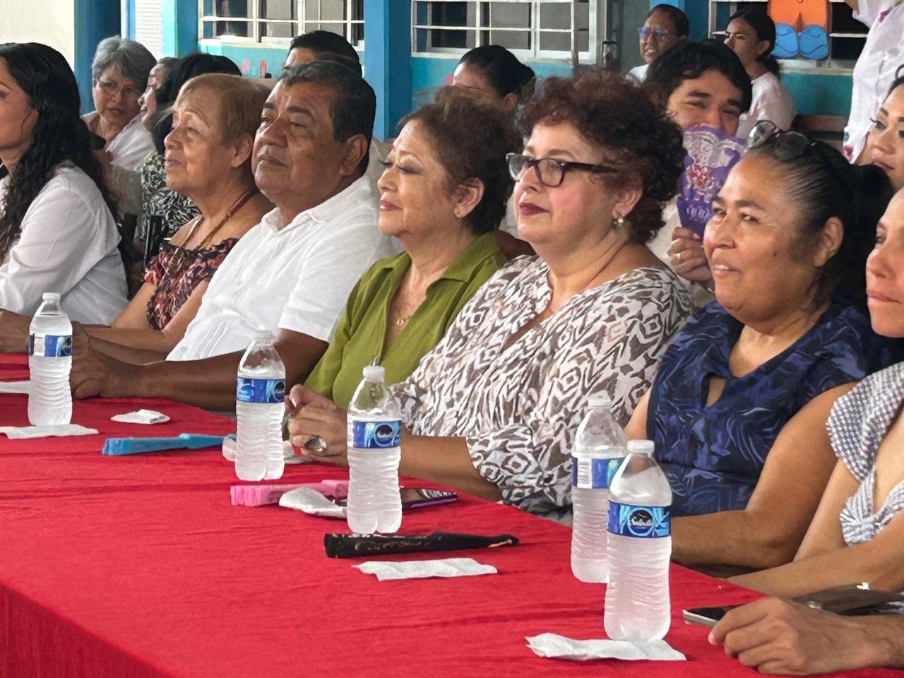 Personal docente y administrativo de la escuela primaria Leona Vicario, realizaron este viernes un homenaje a la directora técnica, Margarita del Carmen Martínez Argueta, por su legado y entrega en la educación en las instituciones educativas.