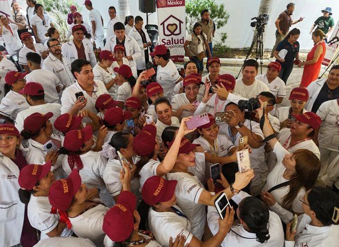 En esta asamblea, también acompañaron a la Presidenta, el secretario técnico de la Presidencia de la República y coordinador general de Programas para el Bienestar, Carlos Torres Rosas; la coordinadora general de Asuntos Intergubernamentales y Participación Social de la Presidencia de la República, Leticia Ramírez Amaya; el director general del IMSS Bienestar, Alejandro Svarch Pérez; el subsecretario de Integración Social y Coordinación de Servicios de Atención Médica, Eduardo Clark García Dobarganes; el director general de BIRMEX, Carlos Alberto Ulloa Pérez; y la subsecretaria de Egresos de la Secretaría de Hacienda y Crédito Público (SHCP), Bertha Gómez Castro.