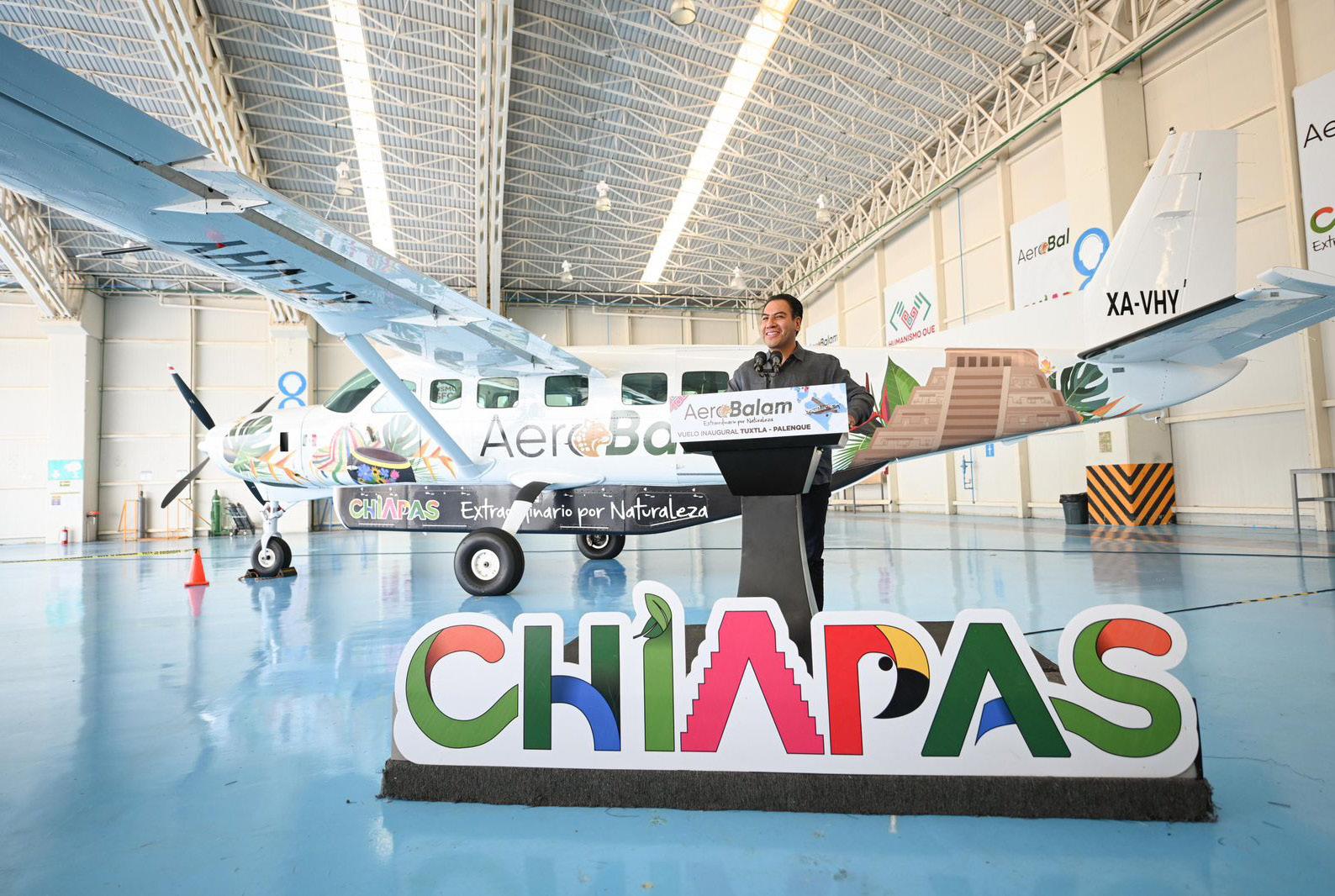 Tuxtla Gutiérrez, Chiapas; 4 de julio de 2025.En el marco de la inauguración de Aerobalam Tuxtla-Palenque, el gobernador Eduardo Ramírez Aguilar destacó que esta acción forma parte de una estrategia para fortalecer la conectividad en todo el estado de Chiapas y seguir posicionando al sector turístico como una de las principales palancas del desarrollo económico.