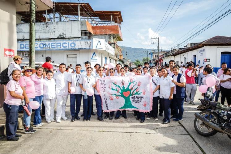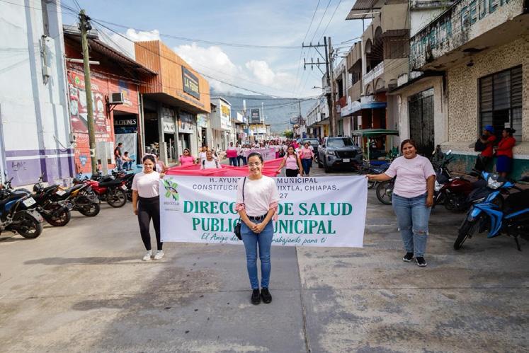 Huixtla, Chiapas. Octubre 17 del 2025.- En conmemoración del Día Mundial Contra el Cáncer de Mama el Ayuntamiento Municipal que preside el C Regulo Palomeque Sánchez, a través la Dirección de Salud Municipal en coordinación con la comisión de Salubridad y Asistencia Social que dirige el regidor Dr. Francisco Javier Ávila Solís, se realizó la marcha “Unidas por la Vida, Caminamos por la Esperanza”.