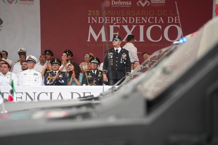 Tuxtla Gutiérrez, Chiapas; 16 de septiembre de 2025.Ante miles de familias reunidas a lo largo de la Avenida Central de Tuxtla Gutiérrez, el gobernador Eduardo Ramírez Aguilar presenció el Desfile Cívico-Militar conmemorativo por el 215 Aniversario del Inicio de la Independencia de México, un evento que exaltó la paz de Chiapas, así como la fuerza, sabiduría y diversidad de las culturas mexicanas. La ceremonia comenzó con el izado de la monumental Bandera Nacional en la explanada del Parque Central.