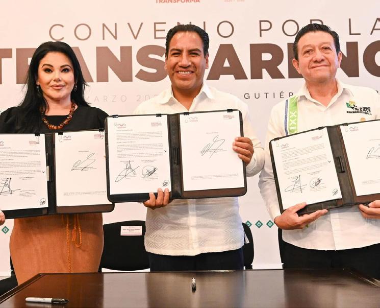 El gobernador Eduardo Ramírez Aguilar participó en la firma del Convenio por la Transparencia donde reiteró que su administración tiene un único compromiso: servir al pueblo de Chiapas, por lo que subrayó la importancia de este acuerdo, el cual garantiza una adjudicación de obras de manera transparente y simboliza la voluntad de hacer las cosas bien, para fortalecer la confianza de la gente en sus autoridades.