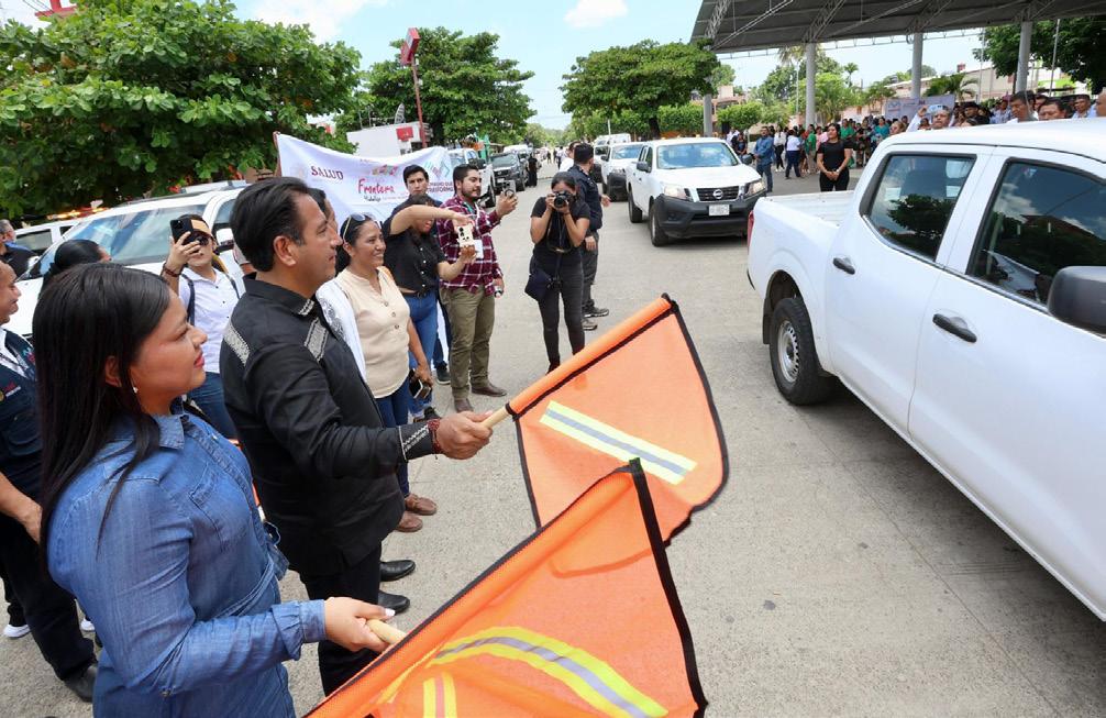 Más tarde, en el municipio de Frontera Hidalgo, el gobernador dio el banderazo de salida a las brigadas de descacharrización, fumigación, nebulización y vacunación, dirigidas especialmente a sectores vulnerables, con el propósito de reforzar la salud pública y combatir el dengue y otras enfermedades transmitidas por vectores.