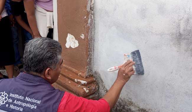 “Preparamos una muestra de pintura con cal, mucílago de nopal, alumbre y una mezcla de pigmentos minerales; para ello, todos los materiales fueron medidos, pesados y mezclados homogéneamente para tener una