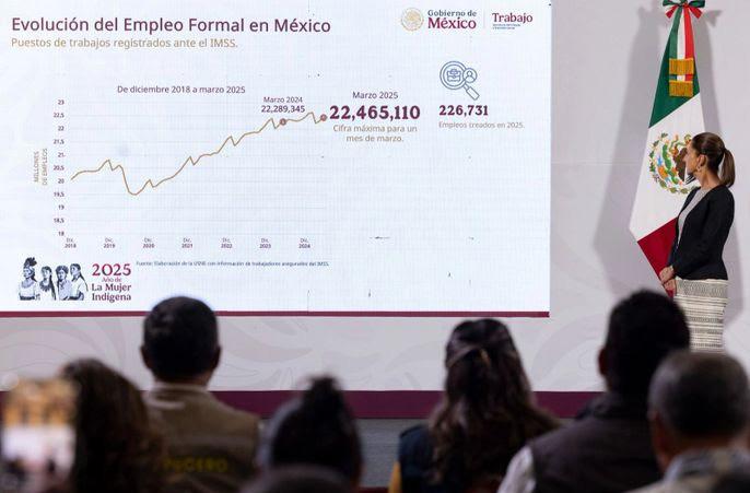 Ciudad de México, 25 de abril de 2025.- La Presidenta Claudia Sheinbaum Pardo anunció que, como parte del Plan México, se ofertarán 100 mil empleos adicionales a través de las Ferias del Empleo y del Portal del Empleo en la página www.empleo.gob.mx , que promoverá la Secretaría del Trabajo y Previsión Social (STPS).
