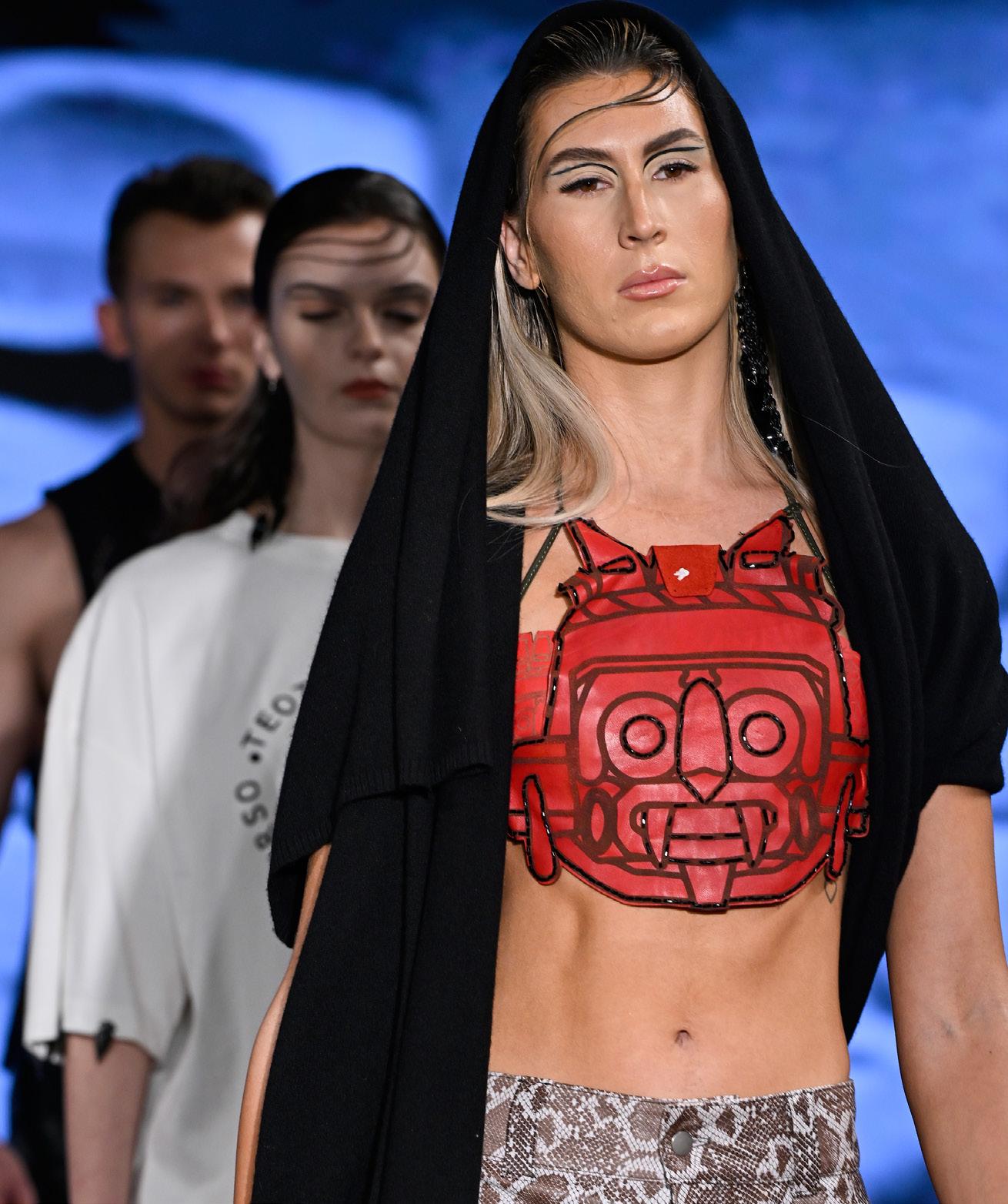 En la pasada edición de febrero 2024 del New York Fashion Week, el diseñador Ricardo Seco cautivó a la audiencia con su colección “Quetzalcóatl Rocks”, una oda magistral a la rica herencia cultural del México Prehispánico. Esta colección se distingue por la cuidadosa integración de elementos tradicionales del vibrante arte azteca y la icónica representación de Quetzalcóatl, la serpiente emplumada de la mitología azteca.