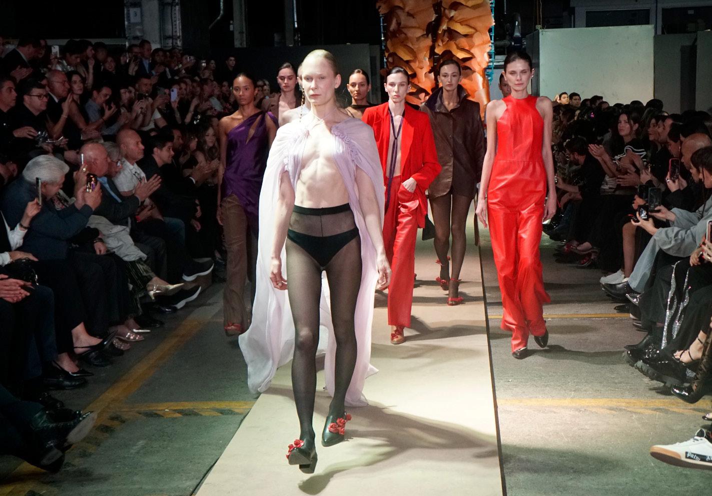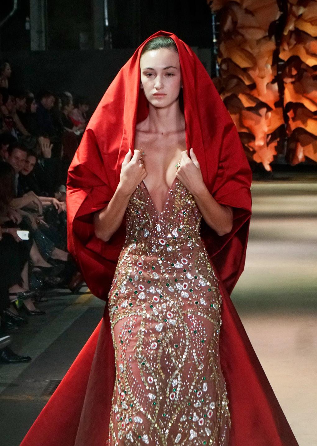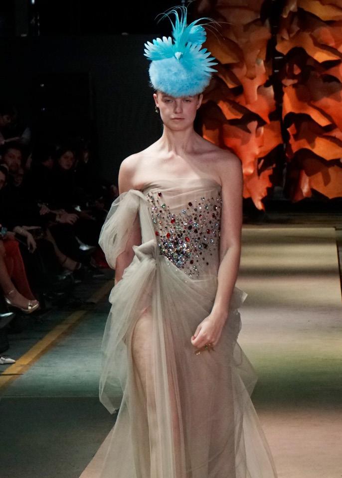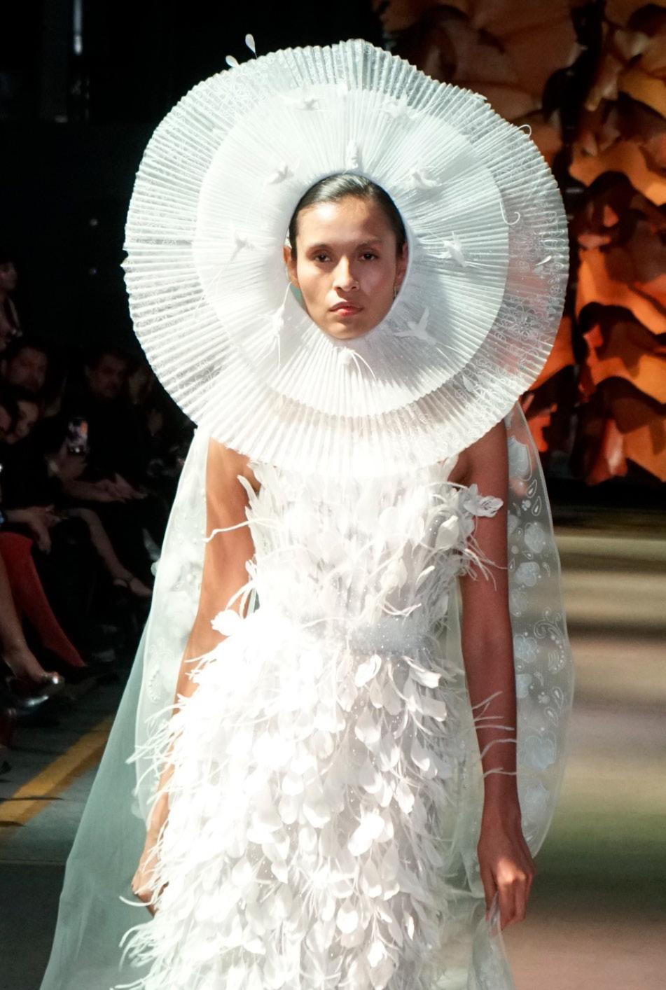 Las prendas resaltaban el uso de plumas encajes, bordados y materiales naturales, impactando a la audiencia de esta gran pasarela de celebración.