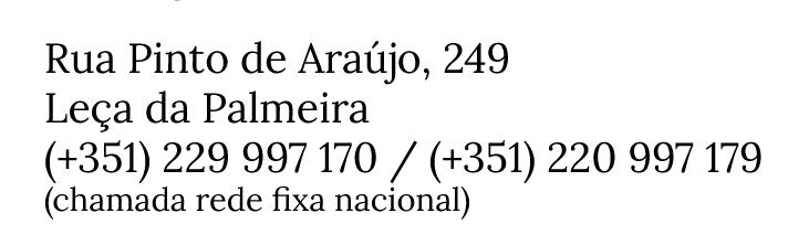 DIREÇÃO POSTAL: Apartado 2153, 4450-901 Matosinhos