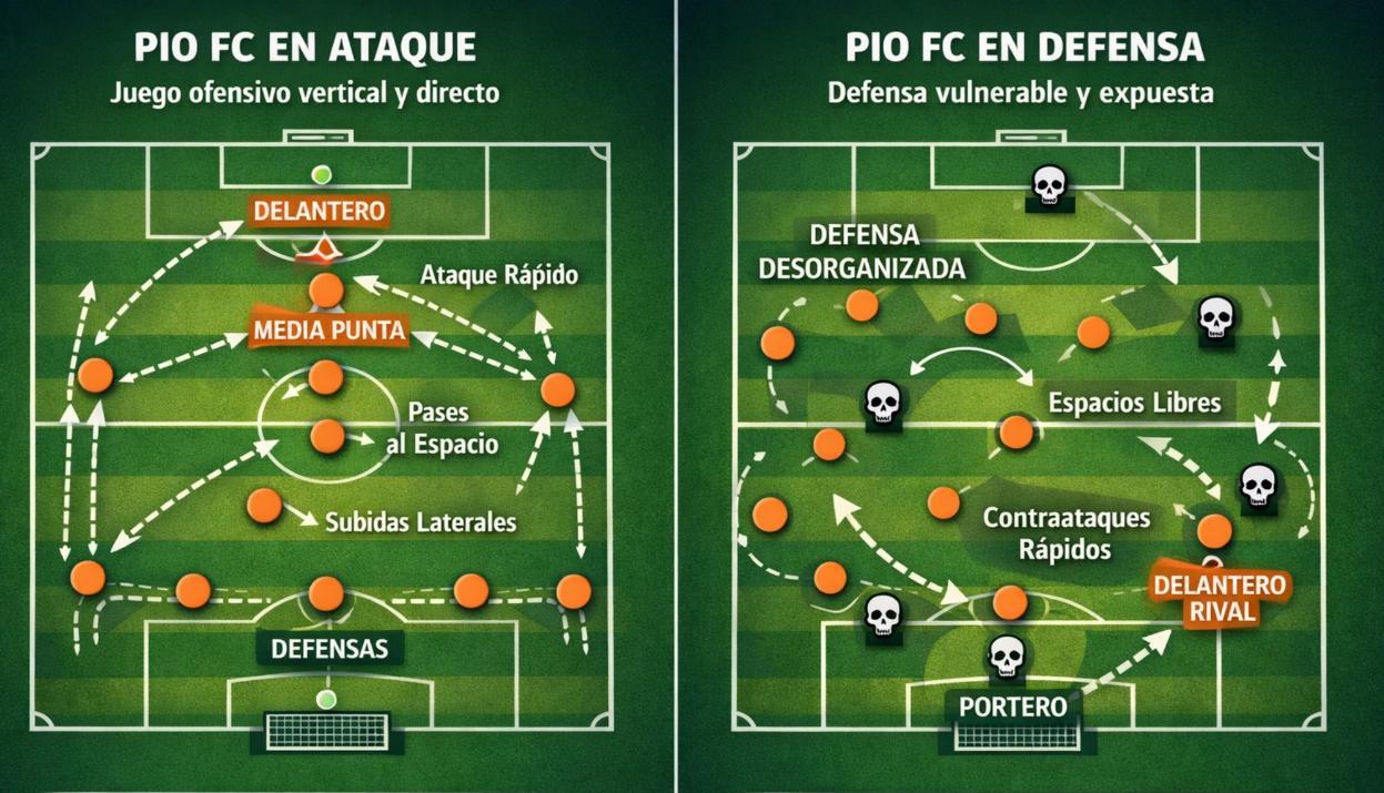 Estrategia mostrada en ataque y defenza con PIO FC.