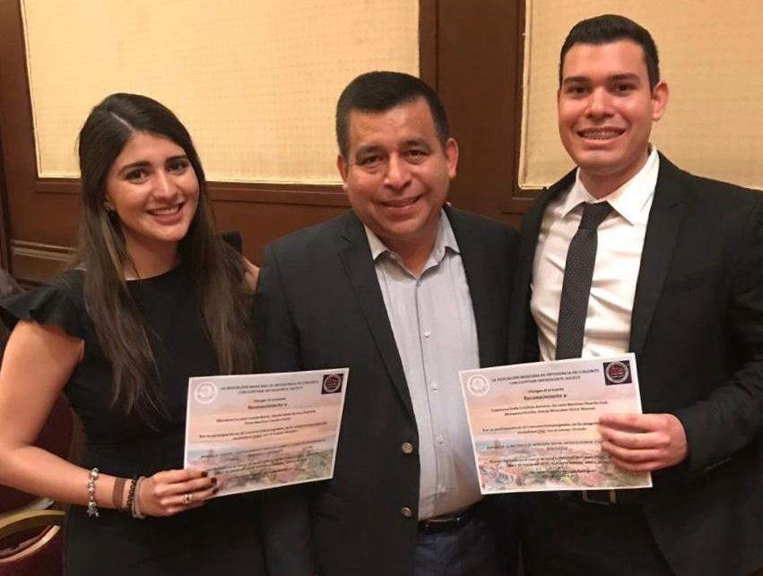 Primero, los alumnos Camila María Mendoza Escobar y Cristhian Antonio Cuarezma, de maestría, en compañía del coordinador del posgrado, doctor Franco Fonseca Balcazar, obtuvieron dos primeros lugares (Modalidad Cartel, Trabajo de Investigación y Modalidad Exposición Oral: Trabajo de Investigación, respectivamente) en el marco del LII Congreso Internacional de la Asociación Mexicana de Ortodoncia, AMO.