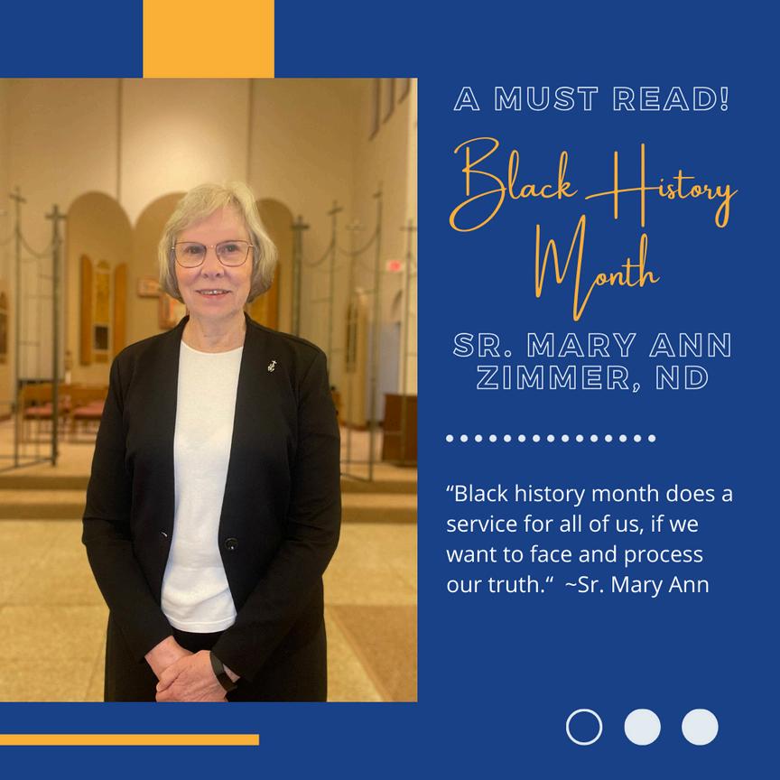 In February, the Sisters celebrated Black History Month. Sr. Mary Ann Zimmer, ND, wrote a blog and said, “Black history month does a service for all of us, if we want to face and process our truth.” Read more: https://notredamesisters.org/news/blackhistory-month/