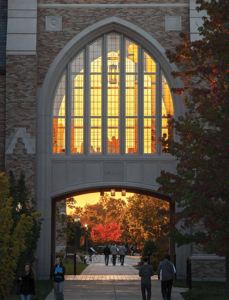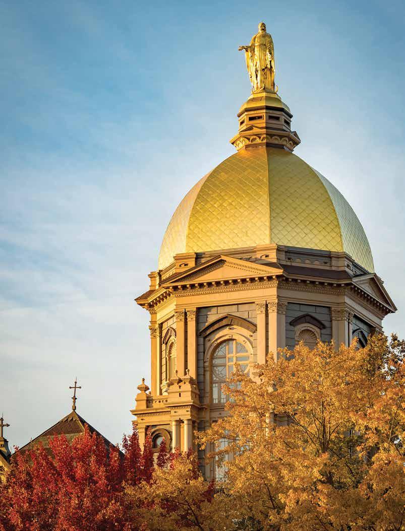 With grassy, tree-lined quads, Collegiate Gothic architecture, two lakes, and nationally recognized landmarks like our Main Building’s Golden Dome and the Hesburgh Library’s “Touchdown Jesus” mural, Notre Dame provides an idyllic and inspiring setting for learning and growth.